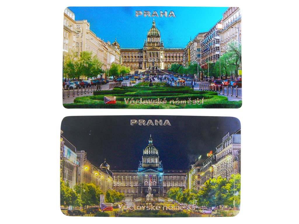 Představujeme vám unikátní suvenýr, který v sobě spojuje krásu a historii jednoho z nejvýznamnějších míst České republiky – Václavského náměstí. Náš oboustranný magnet SPARKYS - Václavské náměstí DEN/NOC není jen obyčejným dekorativním prvkem. Tento magnet v sobě skrývá kouzlo, které vás zavede do srdce Prahy kdykoliv si budete přát. Na jedné straně magnetky se rozprostírá Václavské náměstí oživené denním ruchem, zatímco druhá strana ukazuje jeho noční podobu plnou světel a tajemství. Rozměry 11 x 6 cm zaručují, že tento suvenýr bude vynikat na každé lednici či magnetické tabuli, aniž by zaujímal příliš mnoho místa. 1. Dvojí podoba Prahy: Unikátní oboustranný design vám umožní prožít atmosféru Václavského náměstí jak ve dne, tak v noci, a to vše s jedním magnetem. 2. Perfektní suvenýr: Ať už pro sebe nebo jako dárek pro vaše blízké, tento magnet je ideální památkou na návštěvu Prahy nebo jako symbol vašeho vztahu k tomuto historickému městu. 3. Vysoká kvalita: Vyrobeno s důrazem na detail a kvalitu, tento magnet je nejen krásný, ale i odolný a dlouho vydrží jako vaše vzpomínka. 4. Ideální velikost: S rozměry 11 x 6 cm je tento magnet dostatečně velký, aby upoutal pozornost, ale zároveň se vejde na jakoukoliv magnetickou plochu bez problémů. 5. Multifunkční použití: Kromě toho, že je skvělým suvenýrem nebo dekorací, může tento magnet sloužit i prakticky – udrží pořádek ve vašich poznámkách, účtech nebo fotografiích připevněných na lednici či magnetické tabuli.