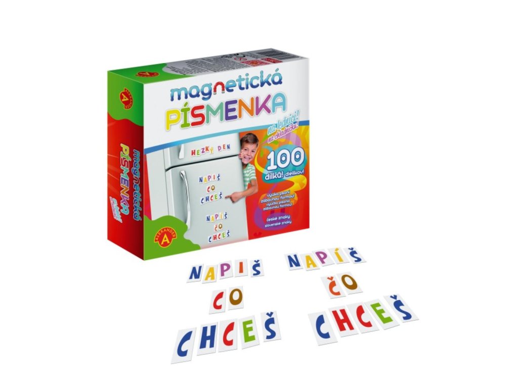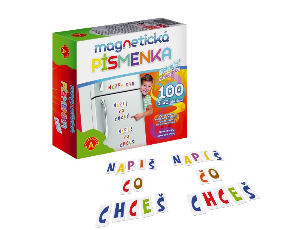 Magnetická písmenka na lednici 100 dílků v krabici 19x18x5cm