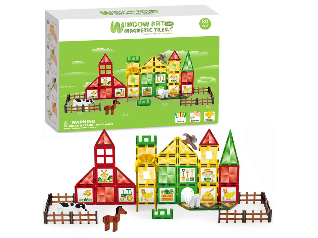 Magnetická stavebnice - Velká farma s malováním 80 ks