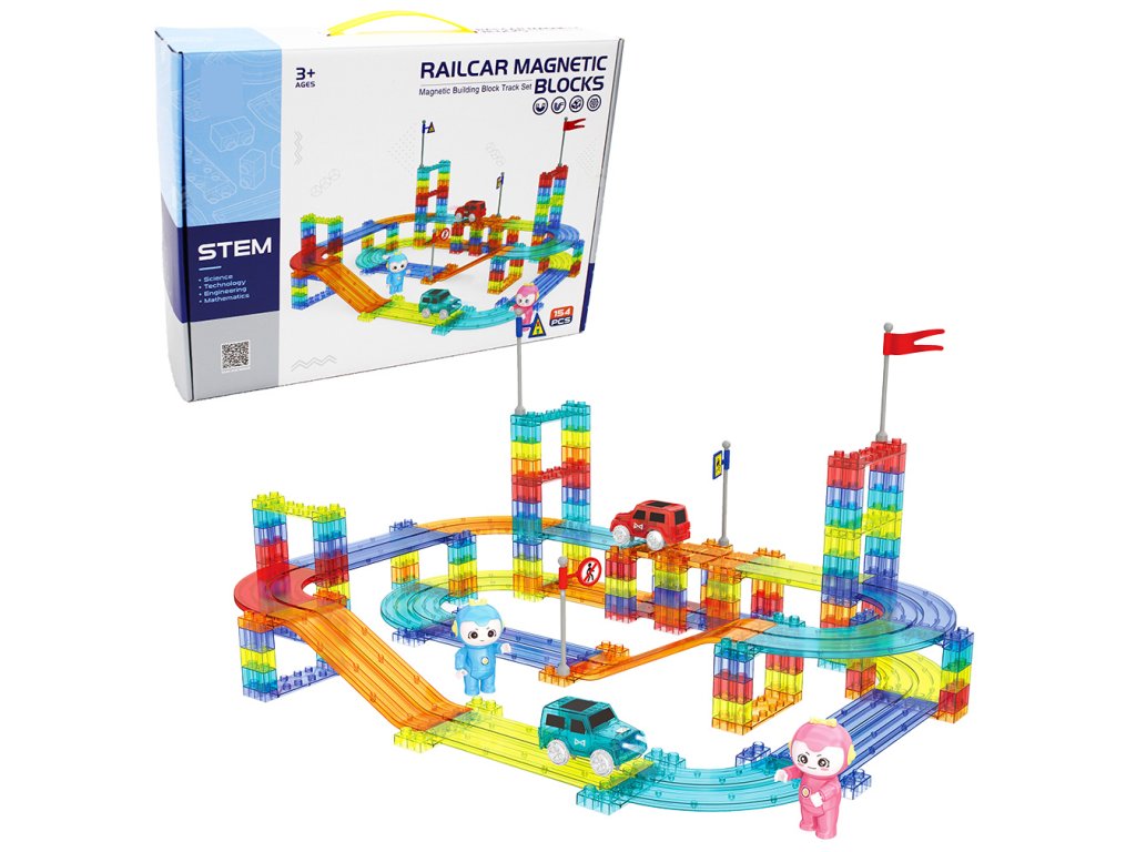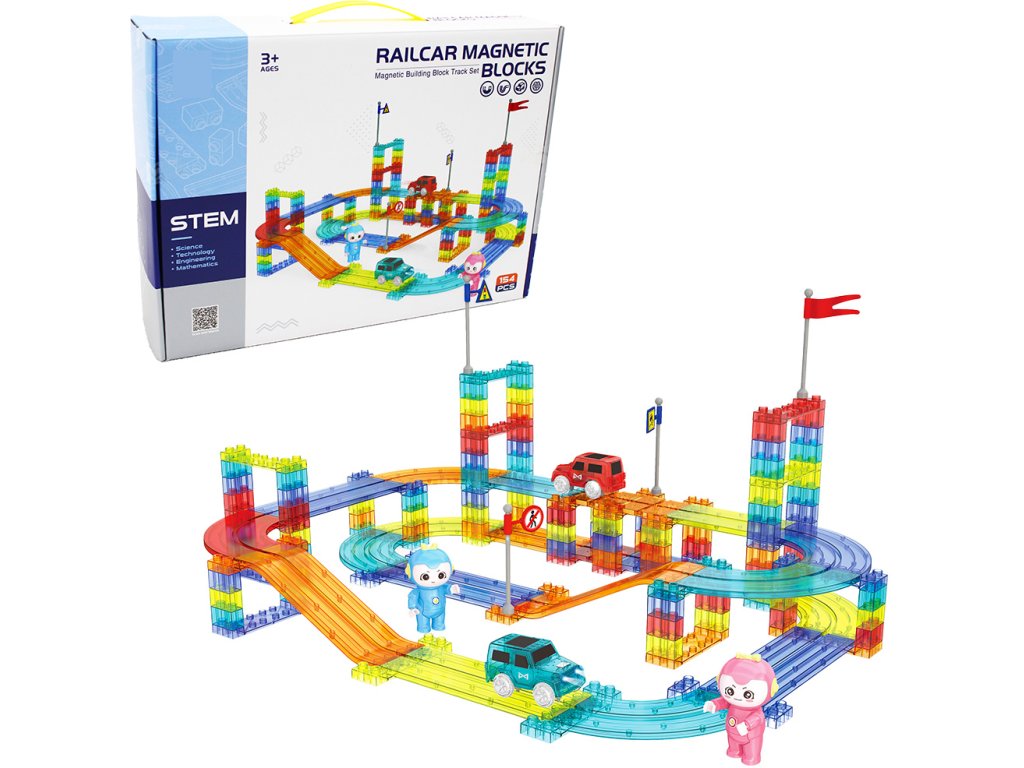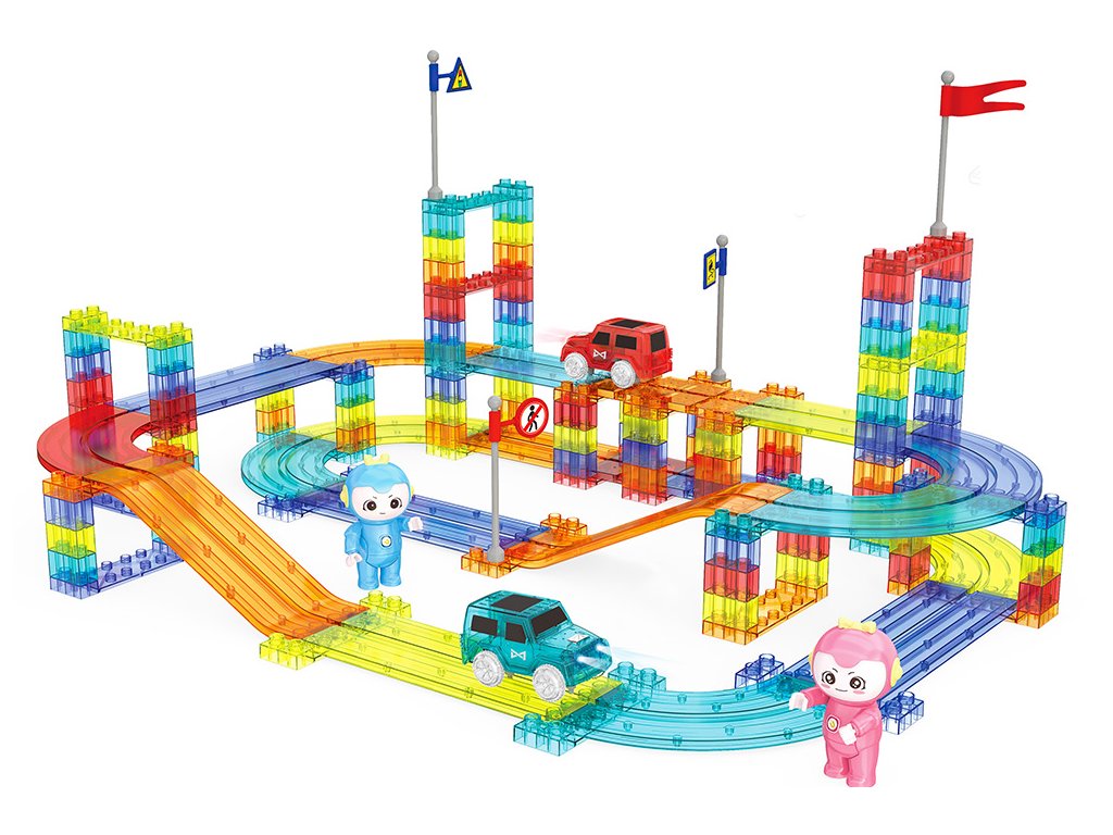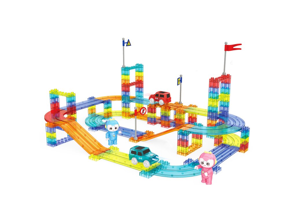 Obsah balení: 2x elektrické závodní auto 152 dílků dráhy (přesný počet jednotlivých dílů dle obrázku na obalu) Magnetické spojovací prvky Baterie: Pro každé auto potřeba 1x AA baterie 1,5V (nejsou součástí) Výměnu baterií musí provádět dospělá osoba Dodržujte správnou polaritu Nepoužívejte různé typy baterií současně Nemíchejte staré a nové baterie Bezpečnostní upozornění: Nevhodné pro děti do 3 let Obsahuje malé části - nebezpečí spolknutí Obsahuje magnety - při spolknutí velmi nebezpečné Při spolknutí magnetů okamžitě vyhledejte lékaře Pokyny pro použití: Před hrou zkontrolujte stav všech součástí Nepoužívejte poškozené díly Odstraňte veškerý obalový materiál Pozor na nebezpečí udušení igelitovým obalem Údržba: Pravidelně kontrolujte stav všech dílů Při delším nepoužívání vyjměte baterie Vybité baterie ihned vyjměte Udržujte hračku čistou a kompletní Likvidace: Elektrická zařízení nepatří do komunálního odpadu Odevzdejte na místa zpětného odběru (www.asekol.cz) Baterie likvidujte na určených místech Další informace: Barvy a detaily se mohou lišit od obalu Obal uschovejte pro další použití Doporučen dohled dospělé osoby