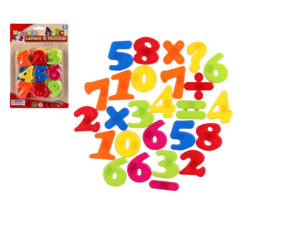 Magnetické číslice 4cm cca 27ks plast na kartě 14,5x22cm