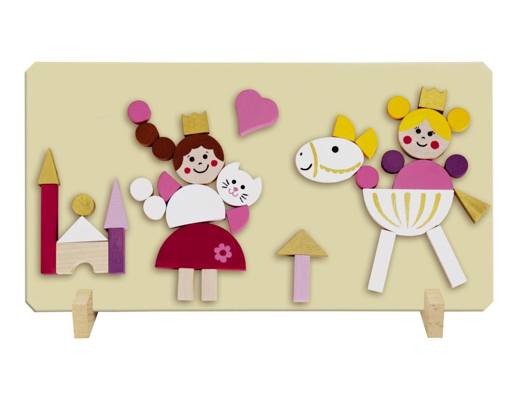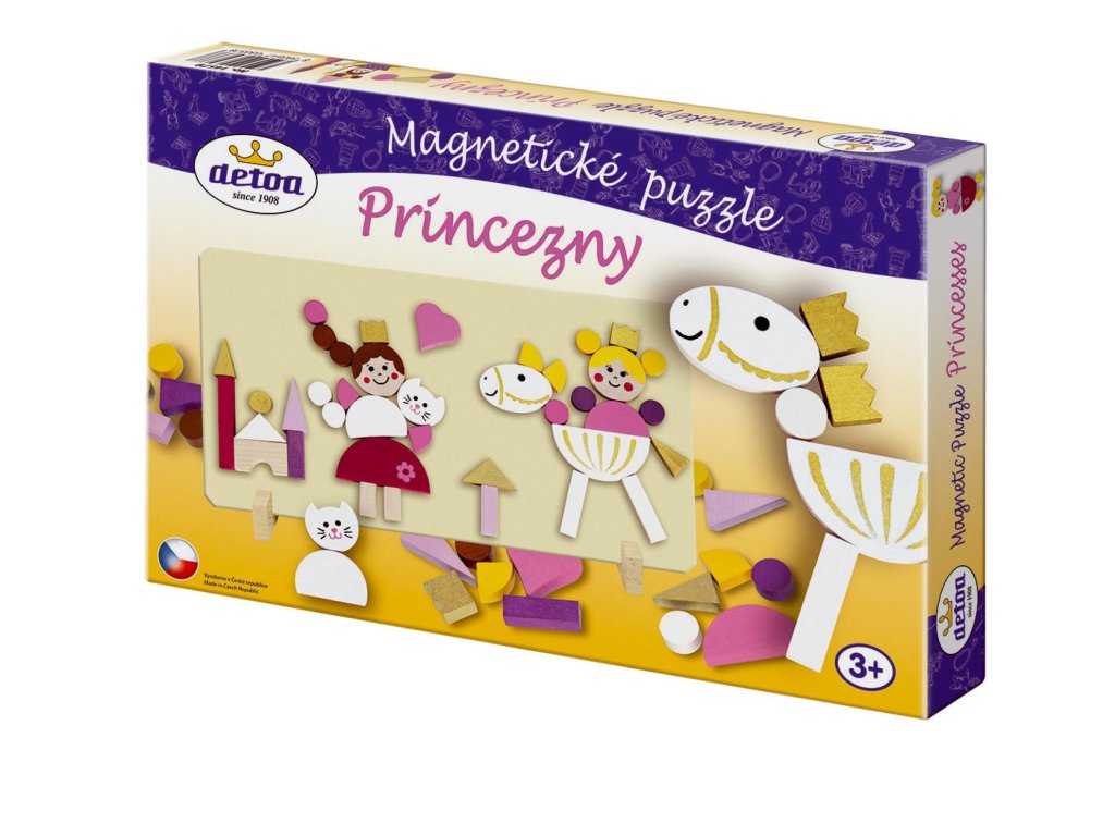 Dřevěné obarvené dílky podlepené magnetky, s oblíbeným dívčím motivem Princezen. Hra pomáhá rozvíjet jemnou motoriku rukou, kreativitu a fantazii dětí. Výrobek splňuje požadavky EU na bezpečnost hraček a je vhodný pro děti od 3 let. Baleno v papírové krabici o rozměrech 100x100x20 mm.