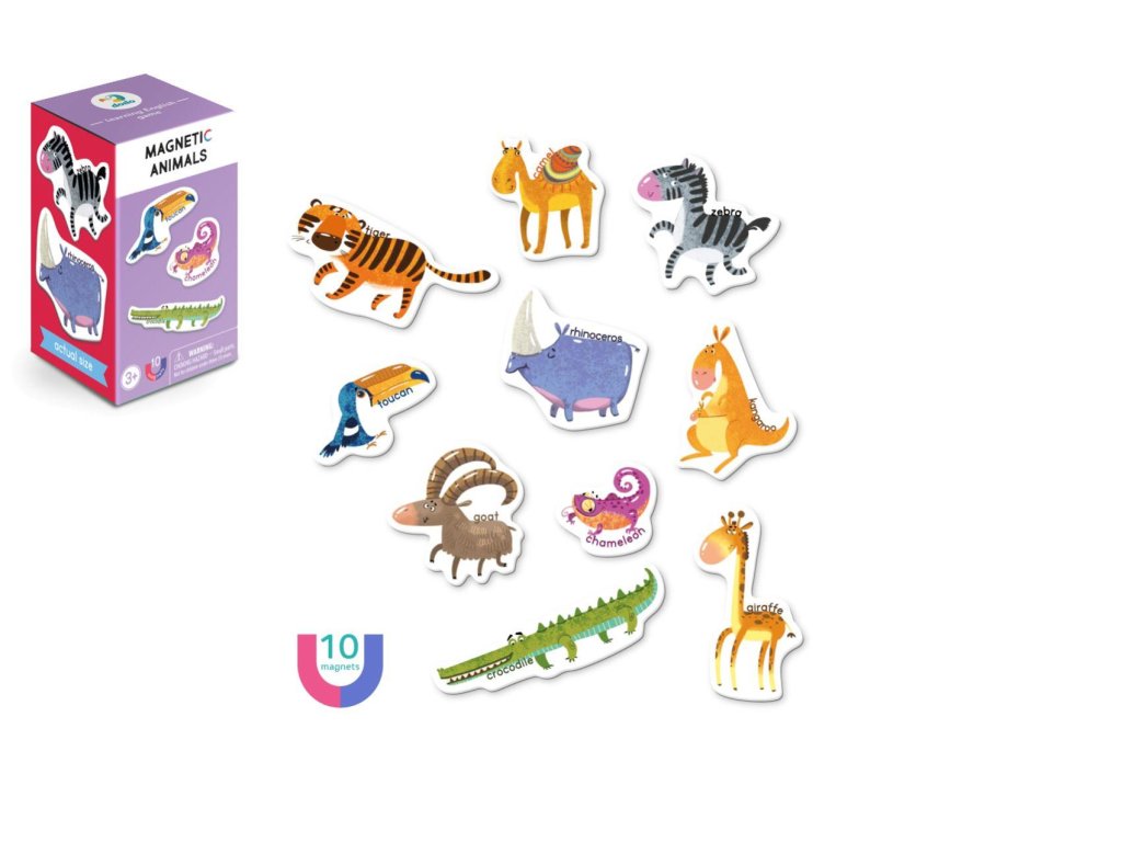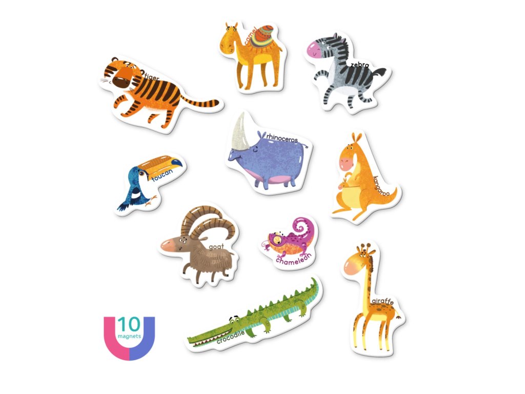 Tato sada magnetů s motivem zvířátek obsahuje poutavé obrázky s anglickými názvy, které budou inspirací pro nekonečné hodiny kreativní hry, ale také dopomocí při učení angličtiny.