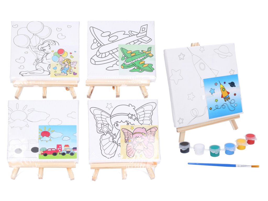Malířské plátno s předlohou o velikosti 15x15 cm. Obsahuje: Stojánek, štětec a barvy. 5 variant: