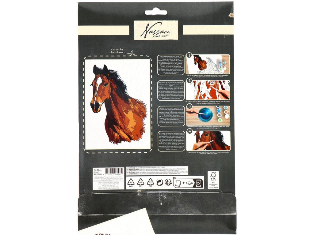 Malování podle čísel s motivem koně. Kreativní set s barvami a štětcem.