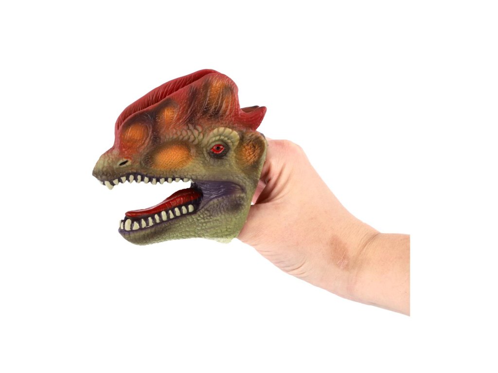 Ovládni vlastního dinosaura! Tento gumový maňásek v podobě dinosauří hlavy se nasazuje na prst a je ideální pro zábavné divadélko, strašení i kreativní hru. Díky měkkému materiálu je příjemný na používání a hodí se i pro menší děti.