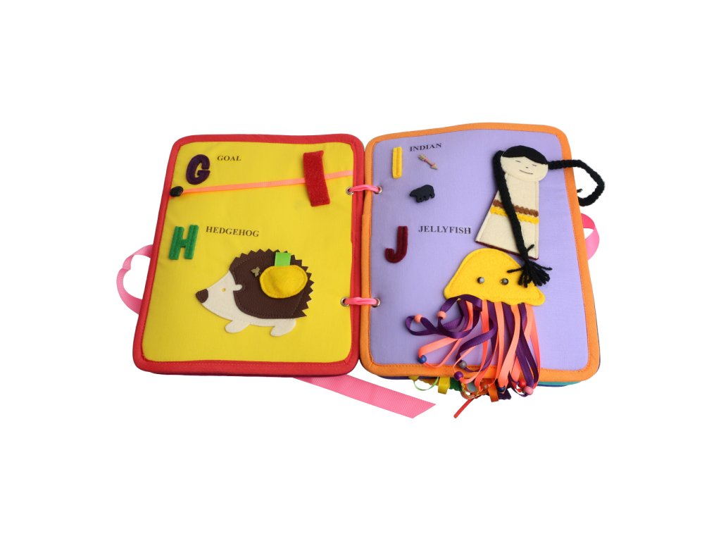 Video je pouze ilustrační, zobrazuje příbuzný produkt. Textilní kniha ABC BOOK nabízí spojení anglických slovíček a písmen se zábavnými aktivitami. Je plná nápadů a her nejen pro ty nejmenší! Každý kus je originální, nabízí odlišné barevné provedení a detaily. Pečlivě vybrané materiály a ruční zpracování dělají z knihy výjimečnou pomůcku s nezaměnitelným charakterem. Hlavní vlastnosti:k výuce základů anglického jazyka14 stran s různými aktivitamioriginální provedení, ruční zpracovánívyrobeno v České republice
