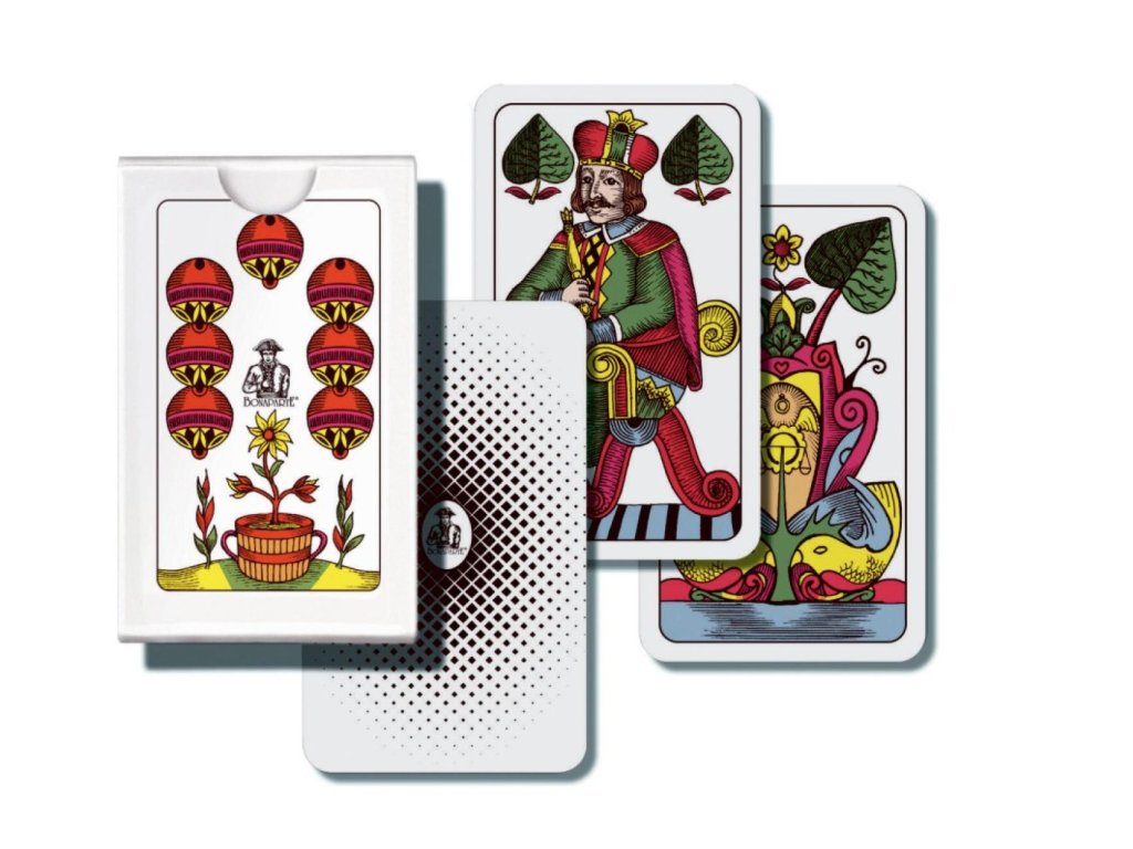 Klasická karetní hra. 32 listů, jednohlavé. V papírové krabičce.