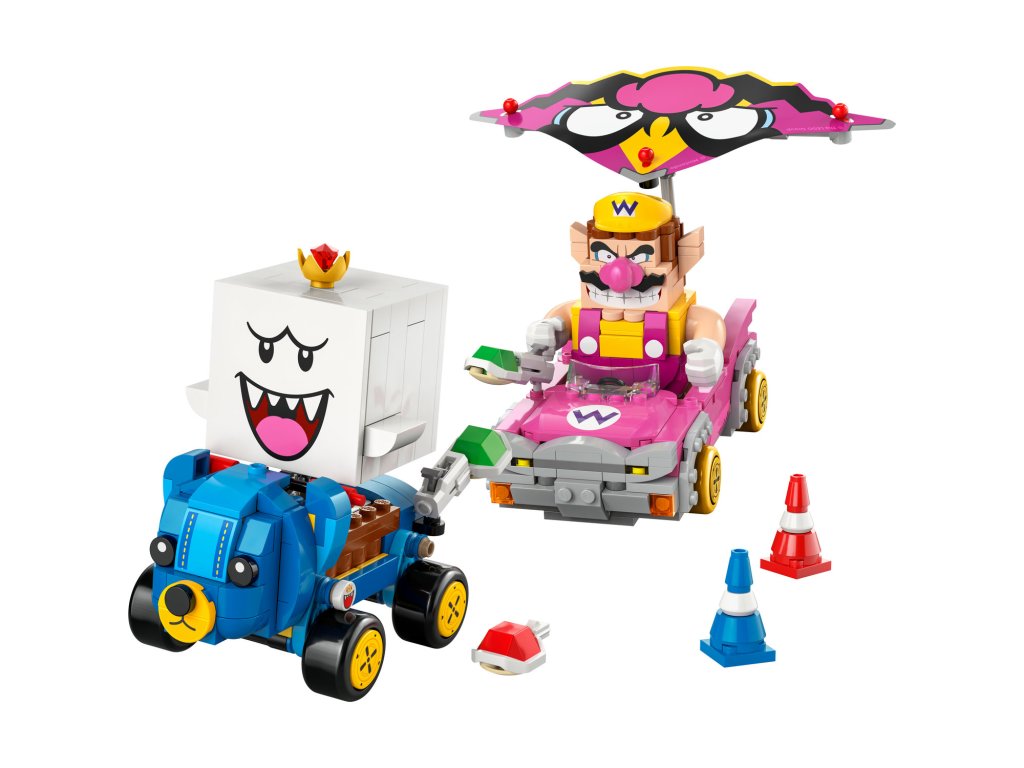 Závoďte, driftujte, létejte a bojujte s tímto setem LEGO® Super Mario™ (72038) Mario Kart™ – Wario a King Boo. Set představuje zábavný dárek pro kluky, holky a obecně gamery od 8 let a obsahuje 2 figurky LEGO Super Mario, modely oblíbených vozidelBadwagon a Teddy Buggy z kostek a 2 dopravní kužely. Každá motokára má funkci vystřelování krunýřů a driftování a Badwagon má odnímatelný kluzák, který lze připojit i k Teddy Buggy. Umístěte figurku LEGO® Mario™, LEGO® Luigi™ nebo LEGO® Peach™ (ze setů 71439, 71440, 71441 nebo 72043 – prodávají se samostatně) do jedné z motokár pro interaktivní hraní, čímž se spustí zvukové a vizuální efekty Mario Kart, včetně zvuku troubení, driftování a létání Návod na stavění tohoto setu Nintendo LEGO najdete v krabici nebo v aplikaci LEGO® Super Mario™. Prohlédněte si i na další sety LEGO Super Mario: Mario Kart (prodávají se samostatně), se kterými můžete závodit a bojovat s dalšími postavami a vozidly. Stavebnice obsahuje 512 dílků.