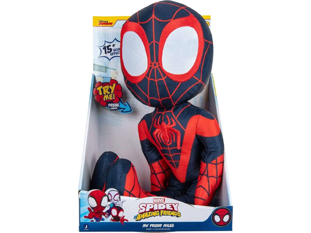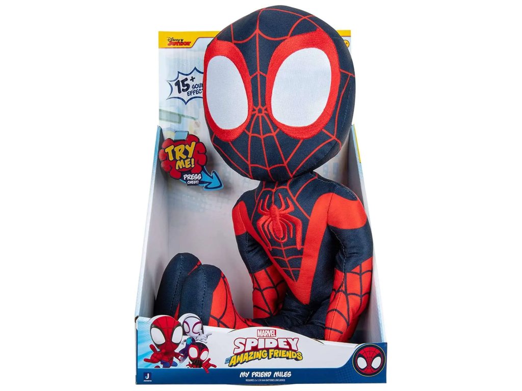 Maskot představuje hrdinu pohádkySpidey and the Super Buddies- Miles Morales . Maskot je vyroben z měkkého plyše a obličejové prvky jsou vyšívané. Miles Morales je plyšová postavička ze série „Spidey a jeho úžasní přátelé“. Nosí ikonický červený a modrý oblek Spider-Mana s vyšívanými detaily pavučiny a také masku, která jí dodává jedinečný vzhled.Hračka má velké, výrazné oči a přátelský výraz obličeje. Je vyrobena z měkkého materiálu, díky kterému je příjemná na dotek a je ideální na mazlení. Jeho výška je přibližně 40 cm. Přehrává 15 různých fráze v angličtině a zvuků , které odrážejí slova postav ze seriálu. Díky interaktivním funkcím se malí mohou vžít do role hrdiny, účastnit se vzrušujících dobrodružství a záchrany.Pomocí hračky mohou děti napodobovat pohyby a slova postav, což rozvíjí jejich představivost a sociální dovednosti, a přitom si hrát s oblíbenými akcemi ze série.Ideální pro hraní o samotě nebo s přáteli! rozměry balení: 31 x 19 x 14 cm délka maskota: cca 40 cm produkt vhodný pro děti starší 3 let vyžaduje baterie: 2 x AAA testovací baterie jsou součástí balení