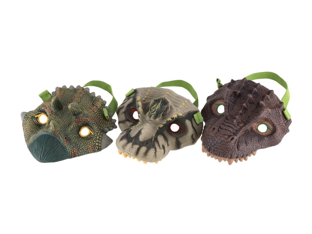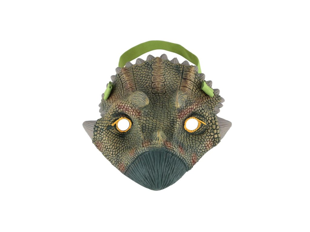 Staň se obávaným dinosaurem! Tato detailně zpracovaná gumová maska přenese děti do pravěkého světa plného dobrodružství. Díky měkkému a pružnému materiálu se pohodlně nosí a skvěle drží na obličeji. Ideální na karneval, maškarní nebo hru doma.