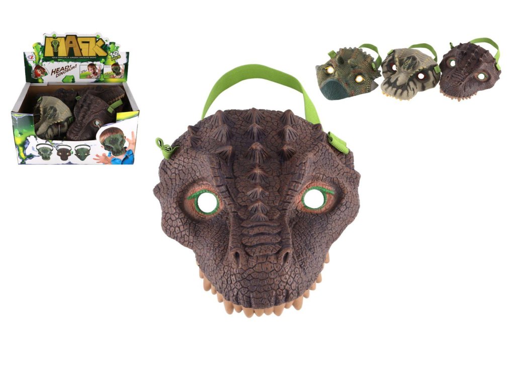 Maska dinosaurus gumová 15x18cm mix druhů 12ks v boxu karneval