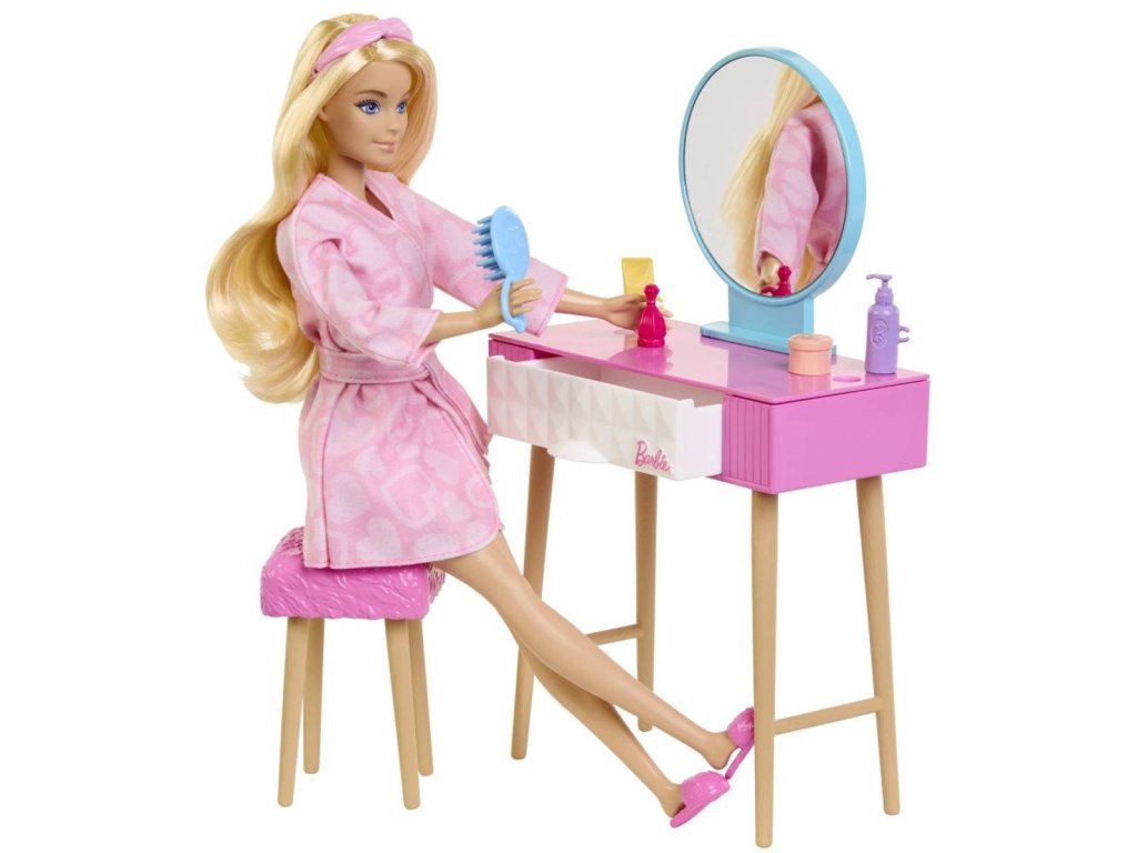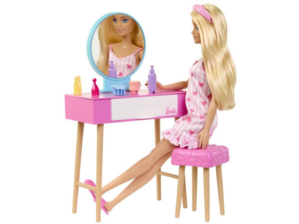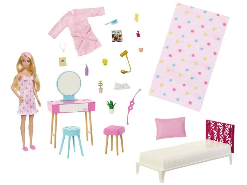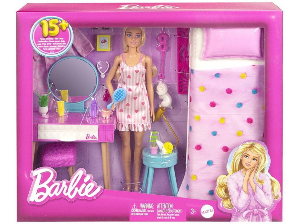 Ložnice - herní set panenka Barbie + tématické doplňky (nábytek a vybavení, dekorace, kosmetika a další)