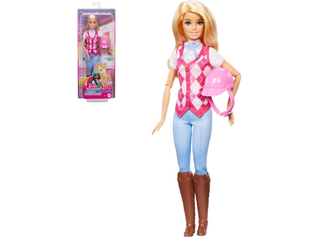 Inspirujte se novým seriálem Barbie® na Netflixu a pusťte se do jezdeckých her! Panenka jezdkyně "Malibu" je připravena ve svém stylovém jezdeckém oblečku vyrazit na koni ven (kůň se prodává samostatně)! Panenka má na sobě košili, vestičku, kalhoty, boty a helmu. Ohybné lokty a kolena umožňují dětem plně se ponořit do zábavy při hraní rolí.