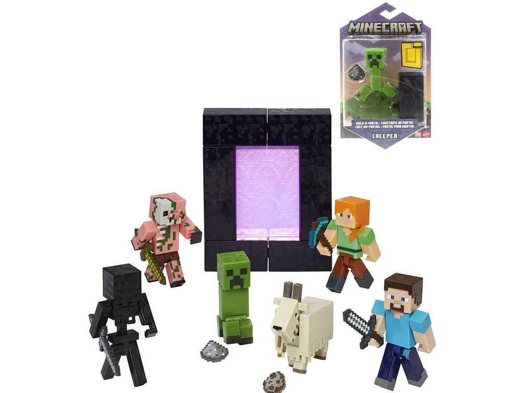 Tyto akční figurky byly autenticky vytvořeny s použitím charakteristického pixelového designu videohry Minecraft. Pohyblivé klouby umožňují postavičkám zaujmout akční pozice. Součástí balení je také jeden dílek sestavitelného Portálu. Hráči je mohou všechny posbírat a postavit tak kompletní portál Minecraft. Skvělý dárek pro fanoušky Minecraftu. Herní set v několika variantách provedení. Každý se prodává samostatně, v závislosti na dostupnosti.