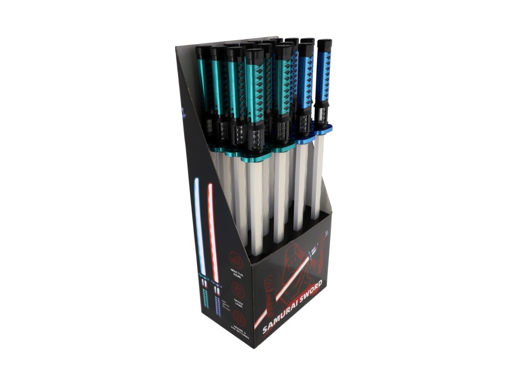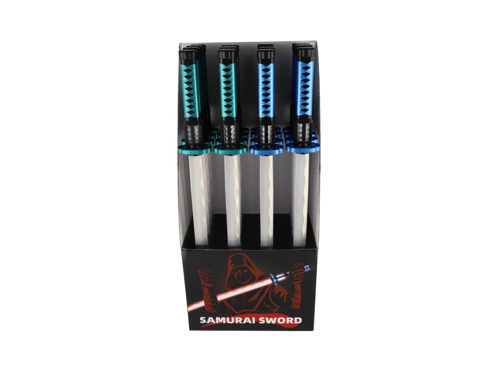 Meč samurajský svítící plast 73cm na baterie se zvukem se světlem 2 barvy 16ks v boxu