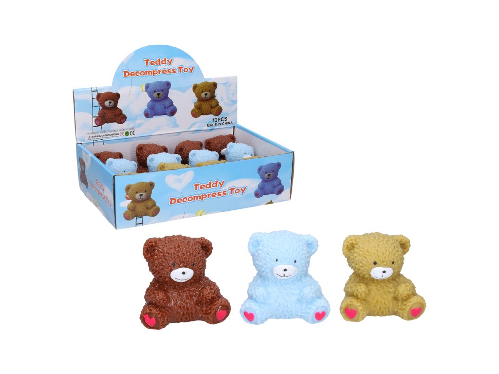 mačkací. Velikost 8 cm. Display box 12ks. 3 varianty - hnědá, modrá, žlutá.