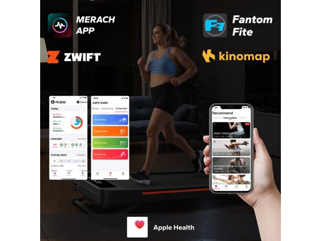 Merach, Kinomap, Zwift, Apple Health, Fanton Fit (od Merach)