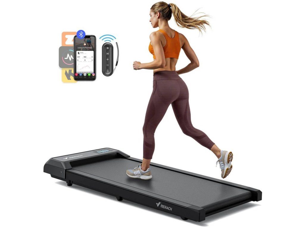 MERACH T21 Chodící pás 3v1, nosnost 120kg. Funguje jako běžecký pás pod stůl, na chůzi nebo jogging s 3 nastavitelnými režimy pro rozmanité domácí tréninky.