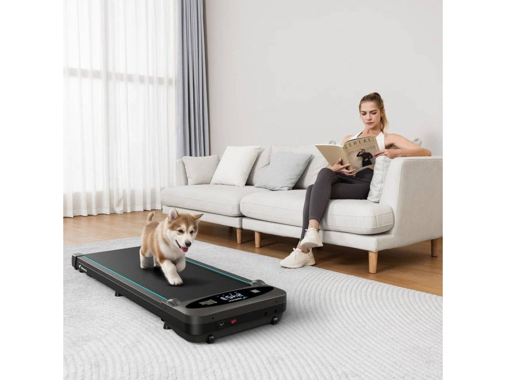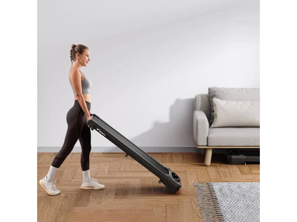 S rozměry 116 x 47,6 x 13 cm se tento přenosný běžecký pás vyznačuje ultratenkým tělem o tloušťce 13 cm a odnímatelným napájecím kabelem, díky čemuž jej můžete skladovat ve svislé nebo vodorovné poloze i v omezených prostorech. Ideální pro malé místnosti!