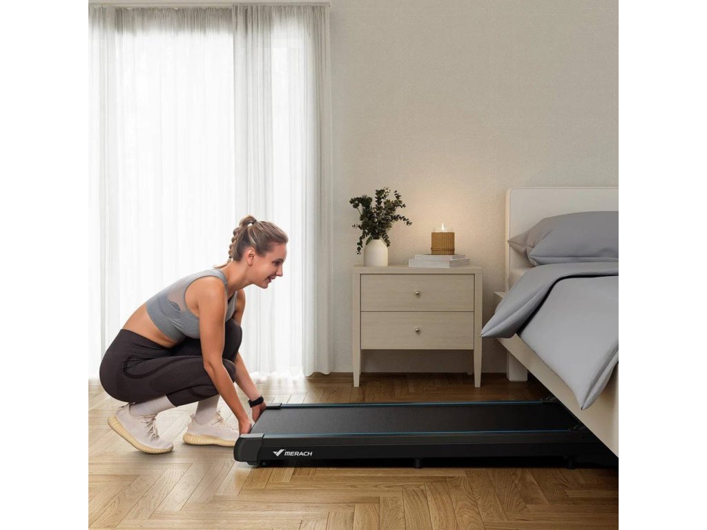 MERACH T26 Chodící běžecký pás 3v1, max. nosnost 110kg. Funguje jako běžecký pás pod stůl, na chůzi nebo jogging s 3 nastavitelnými režimy pro rozmanité domácí tréninky.