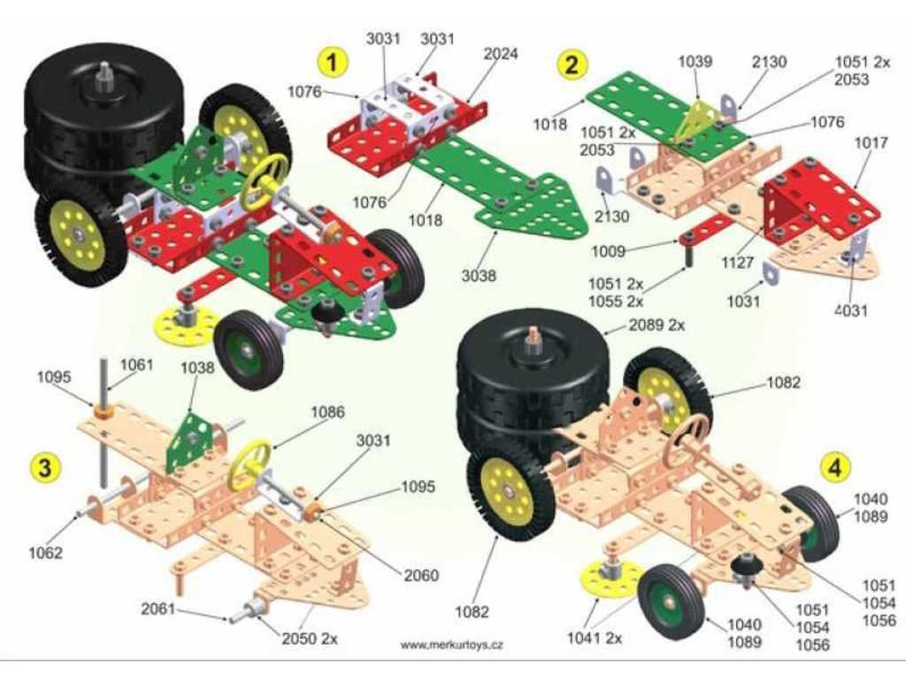 Obsah balení: 341 dílků stavebnice, pracovní nářadí, šroubky a matice, návod
