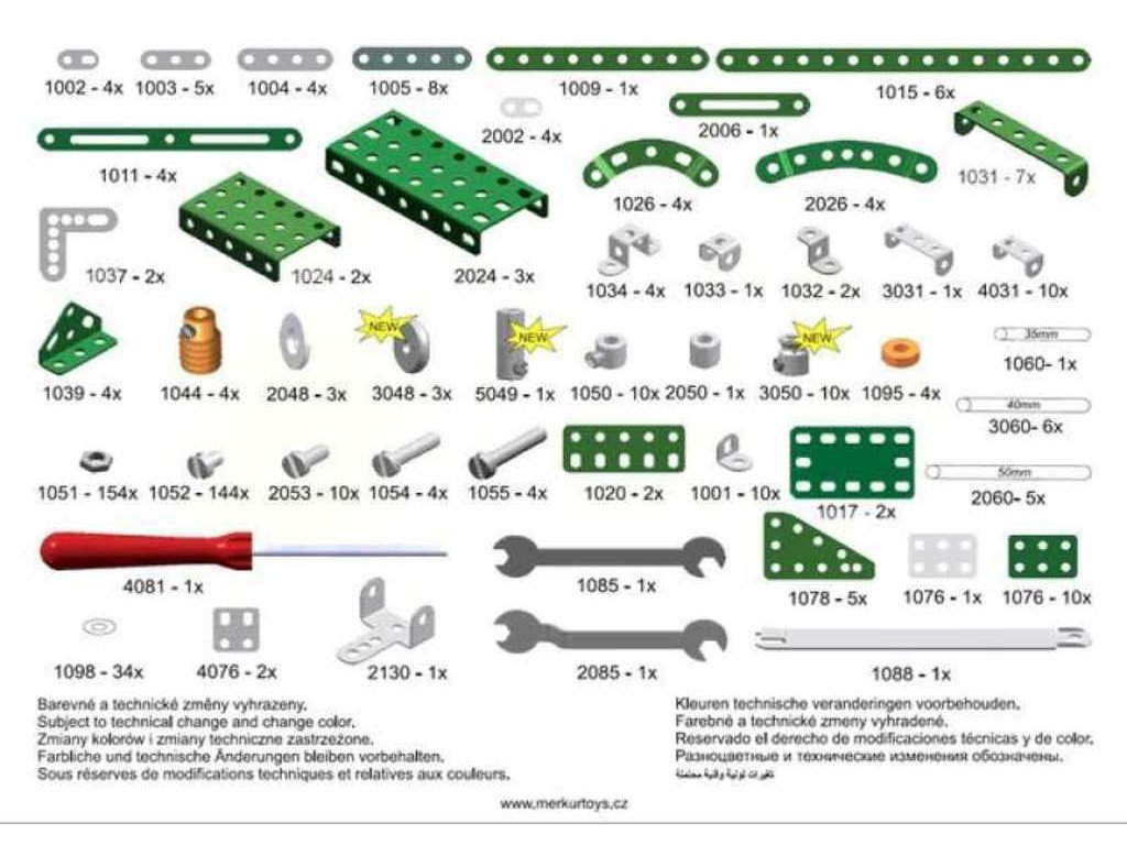 Obsah balení: 516 dílků stavebnice, pracovní nářadí, šroubky a matice, návod