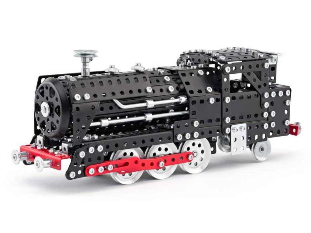 Tradiční česká kovová stavebnice, která potěší každého nadšence do železnice! Merkur LOKOMOTIVA je skvělý dárek pro dědečky, sběratele i malé stavitele, kteří obdivují svět vlaků. Obsahuje kvalitní kovové díly, šroubky, matičky a nářadí, se kterými si sestavíte model klasické lokomotivy.
