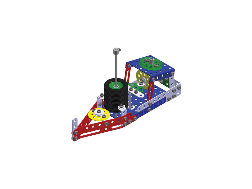 Univerzální jednovrstvá klasická stavebnice - nejmenší z velkých stavebnic. Obsahuje základní sestavu dílů jako jsou pásky, oblouky, plotničky, úhelníky, malá kola, pneumatiky atd. včetně šroubků a