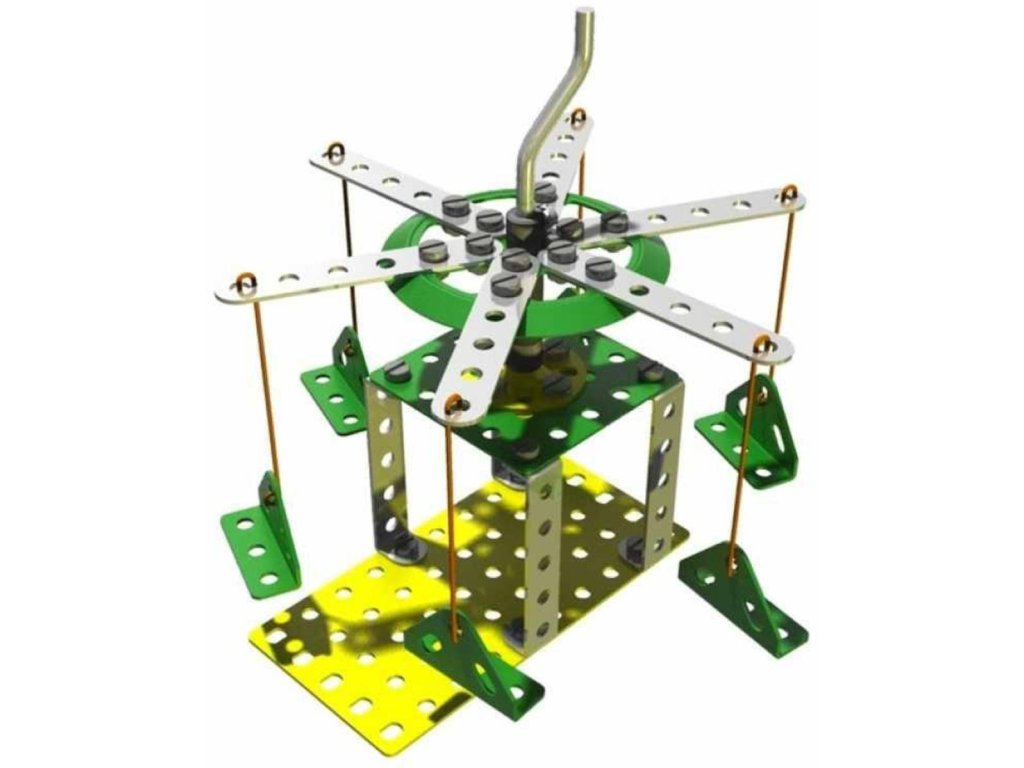 Merkur Mini 10 Kolotoč - jednoduchý model určený pro 1 až 2 vyučovácí hodiny na prvním stupni základní školy. Kvalitní česká kovová stavebnice.