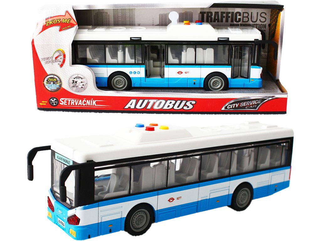 Městský autobus na setrvačník s osvětlením a zvukem - modrý