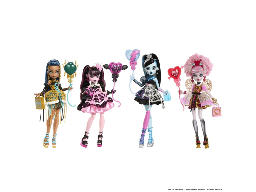 Draculaura pořádá děsivě sladkou narozeninovou párty – a její kámošky z Monster High míří na tuhle oslavu století! Není každý den, kdy monsterka slaví 1600. narozeniny, takže co jiného by se hodilo víc než pořádná párty? Každá panenka z této kolekce je oblečená do parádně děsivého outfitu a přichází s balónky, pozvánkami, narozeninovými přáníčky, dárky a dalšími doplňky. Díky tolika cool doplňkům je jasné, že tahle párty bude neuvěřitelná! Každá panenka se prodává samostatně podle dostupnosti. Panenky nestojí samostatně. Barvy a vzhled výrobku se mohou lišit.
