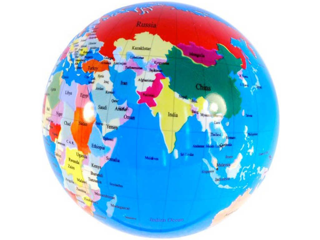 Měkký, lehký balon lesklého vzhledu, s potiskem - mapa Světa (státy)