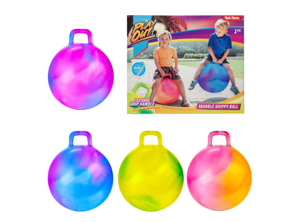 Míč skákací s úchytem 45cm 4 barvy v krabičce 20x17x6,5cm