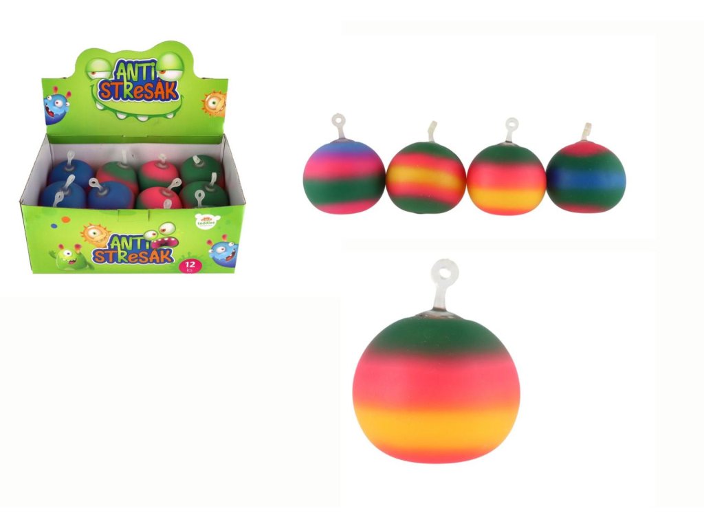Míček antistresový mačkací silikon 11cm duhový mix barev v sáčku 12ks v boxu