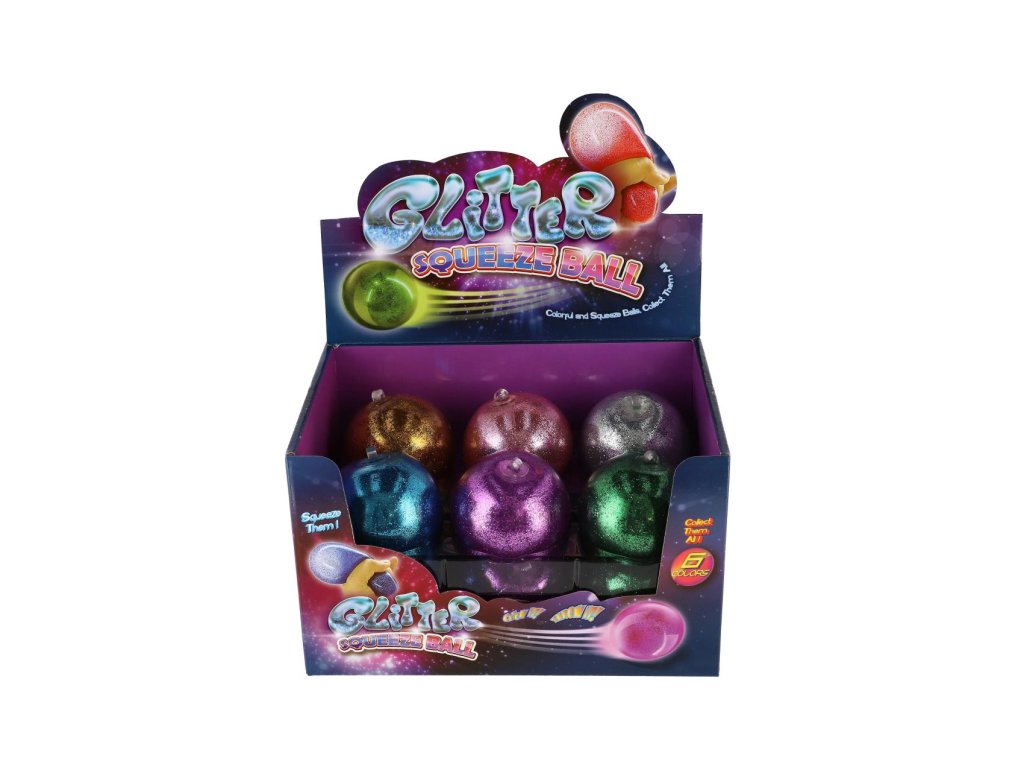 Míček „squeezy“ mačkací v krásných třpytivých barvách. Mačkej a hraj si s ním. Baterie 3 x LR41 jsou součástí výrobku.