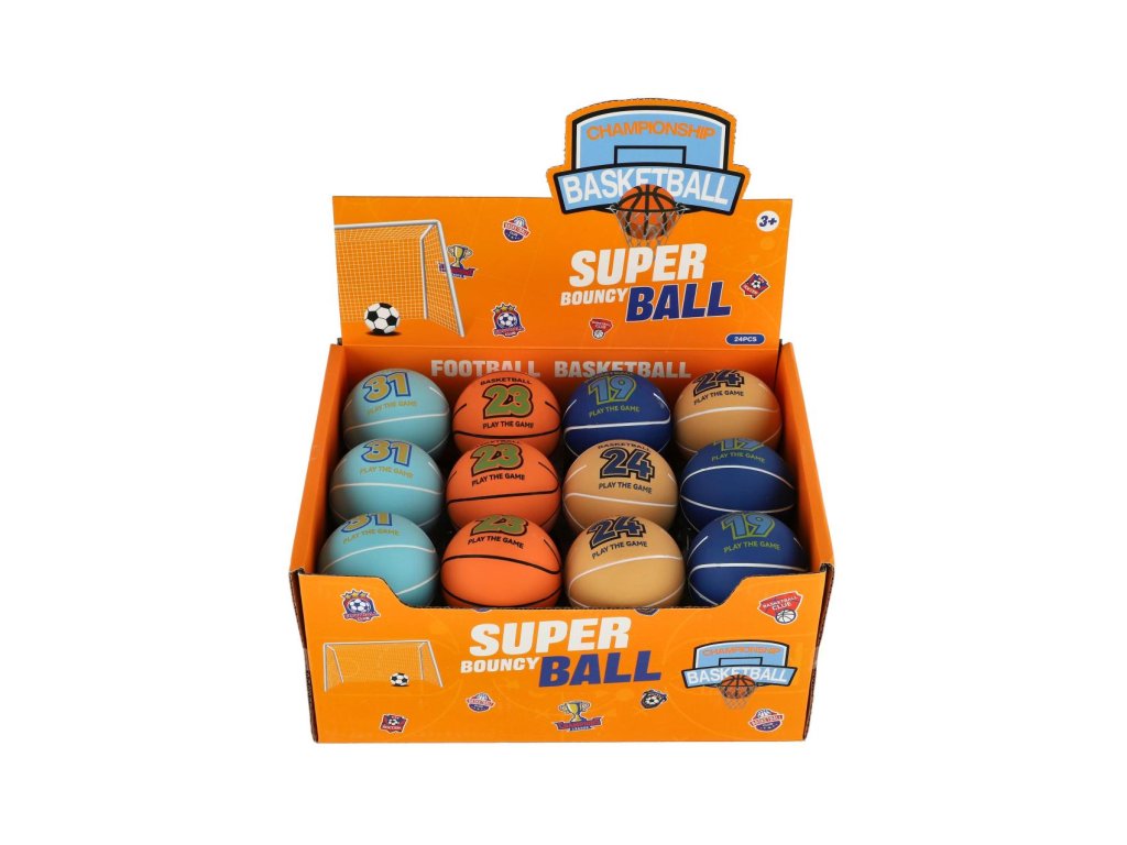Míček extrémně skákací basketbalový pěna 6cm 4 barev 24ks v boxu