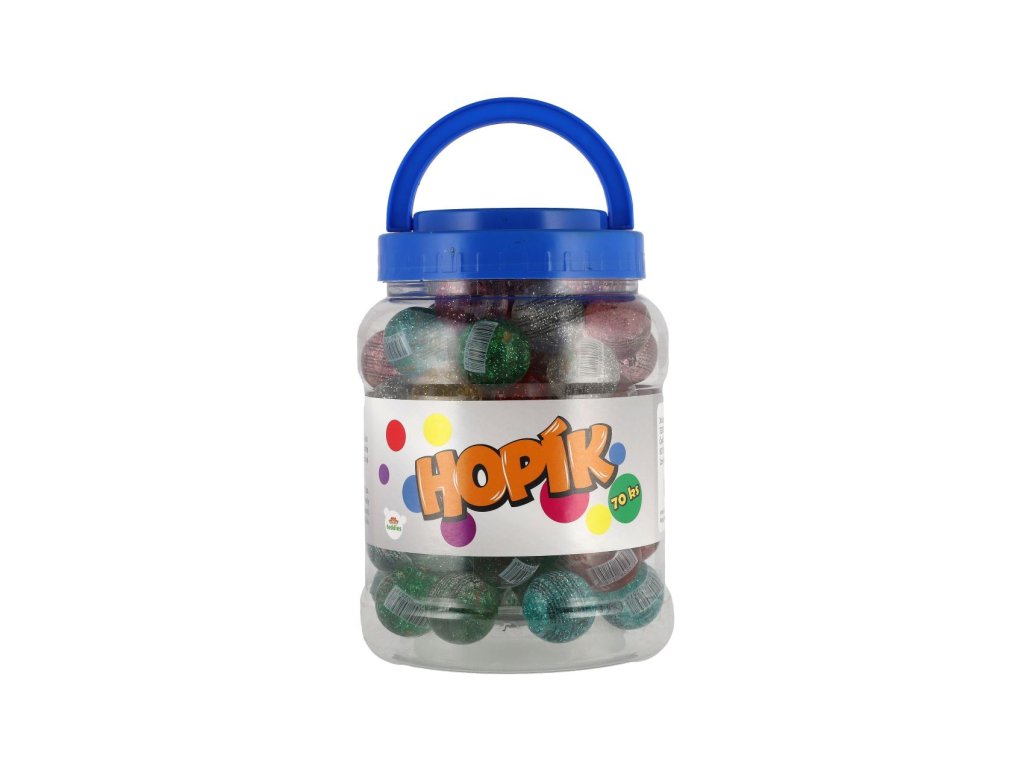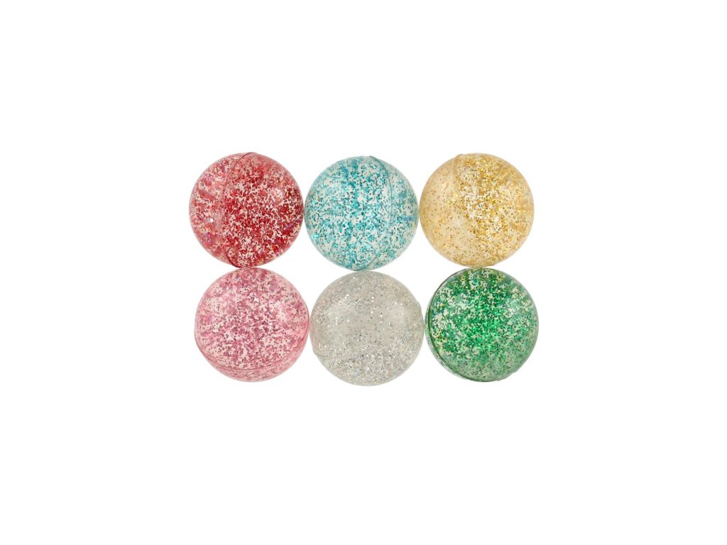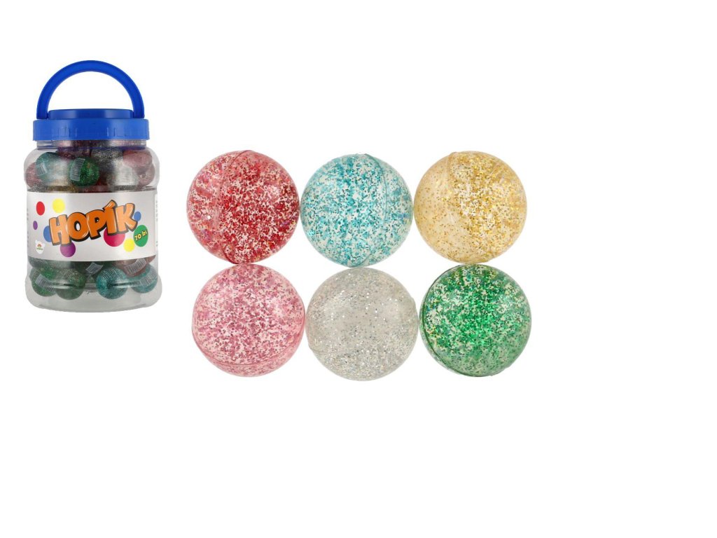 Míček/hopík se třpytkami 3,2cm 6 barev 70ks v dóze