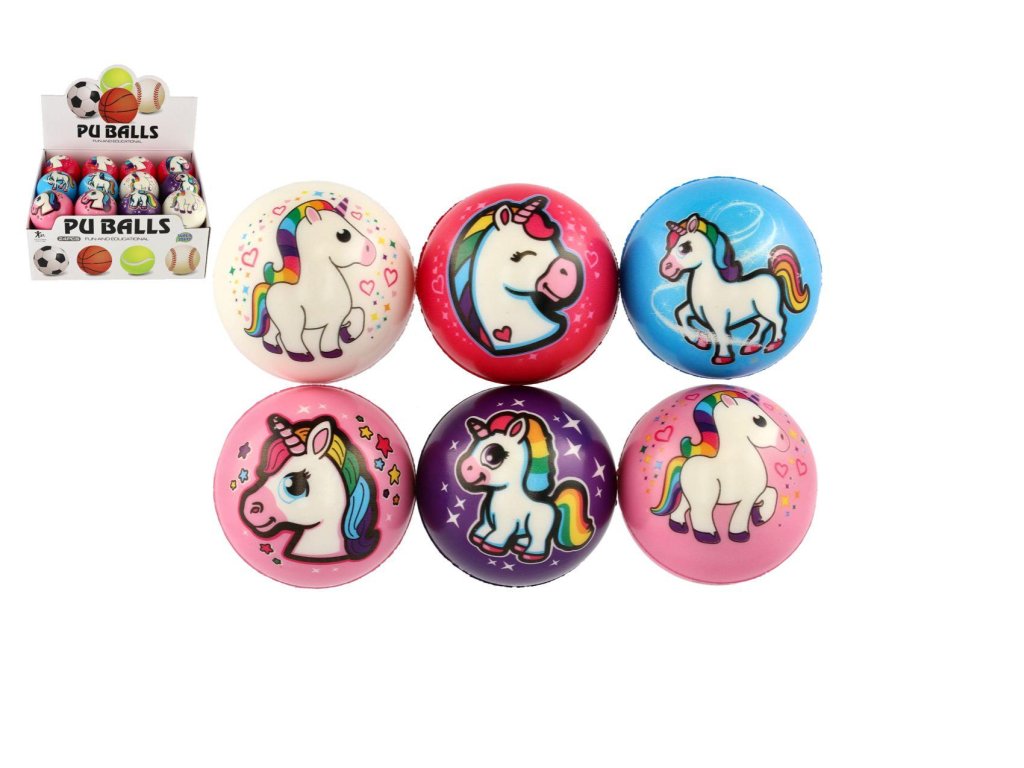 Míček jednorožec pěnový 8cm mix barev v sáčku 24ks v boxu