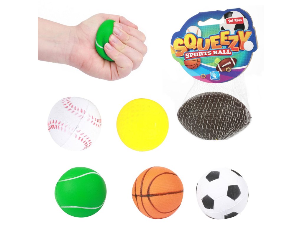Míček mačkací pěna 6-9cm mix druhů na kartě 10x16,5cm