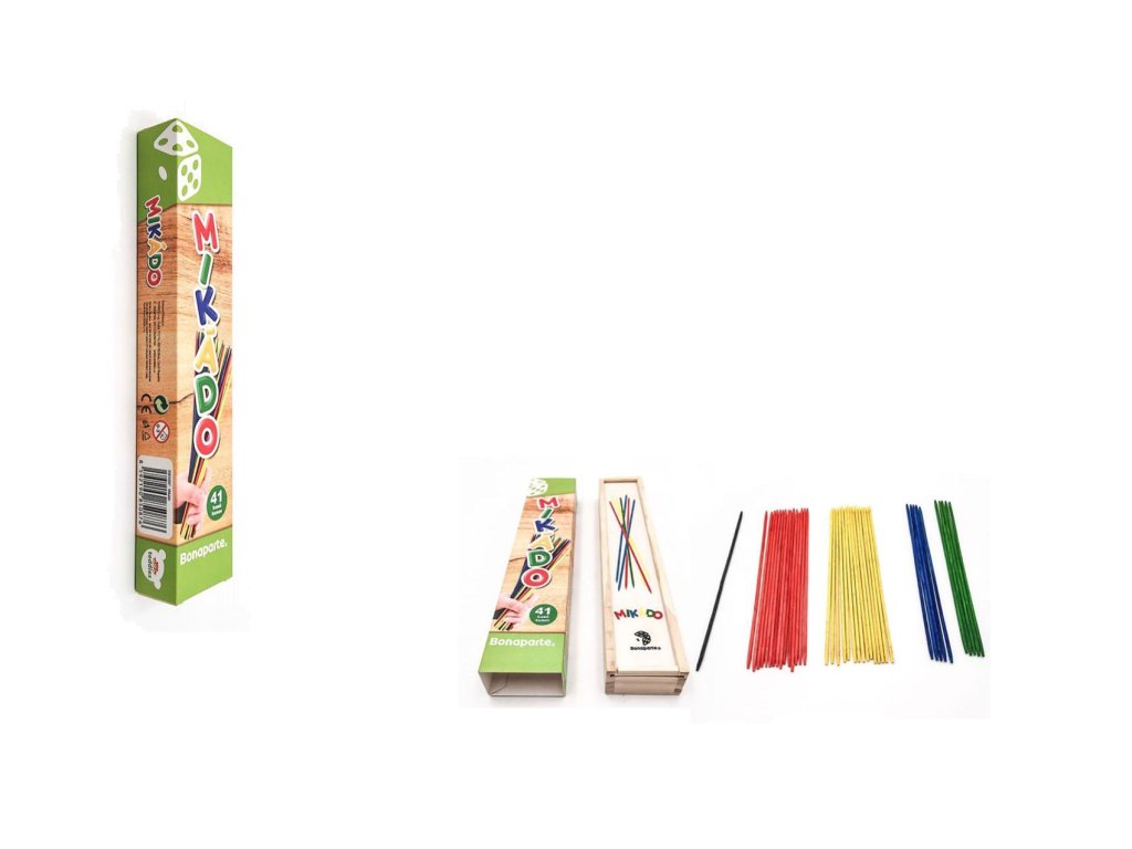 Celý svazek tyčinek se zarovná, sevře jednou z dlaní a pak se náhle z ruky uvolní na stolní desku či jinou podložku. Tyčinky dopadnou na stůl a soupeři pak vytahují z hromádky jednu za druhou. Špatné rozhození je možné 2x zopakovat. Pokud při vytahování dojde k pohnutí kterékoliv jiné tyčinky, ve hře pokračuje soupeř. Po získání tyčinky zvané Mandarin či Mikádo (černá nebo zelená) si jí lze při uvolňování ostatních pomáhat. Hra končí po rozebrání všech tyčinek. Vyhraje ten ze soupeřů, kterému se podaří nasbírat tyčinky s největším bodovým součtem. Dřevěná krabička obsahuje 41 ks dřevěných tyčinek.