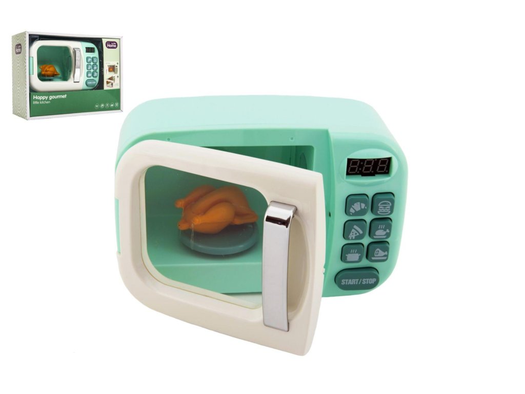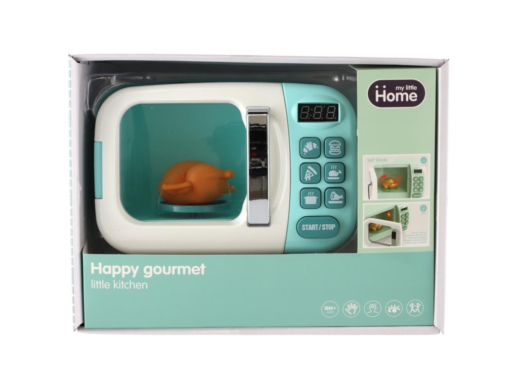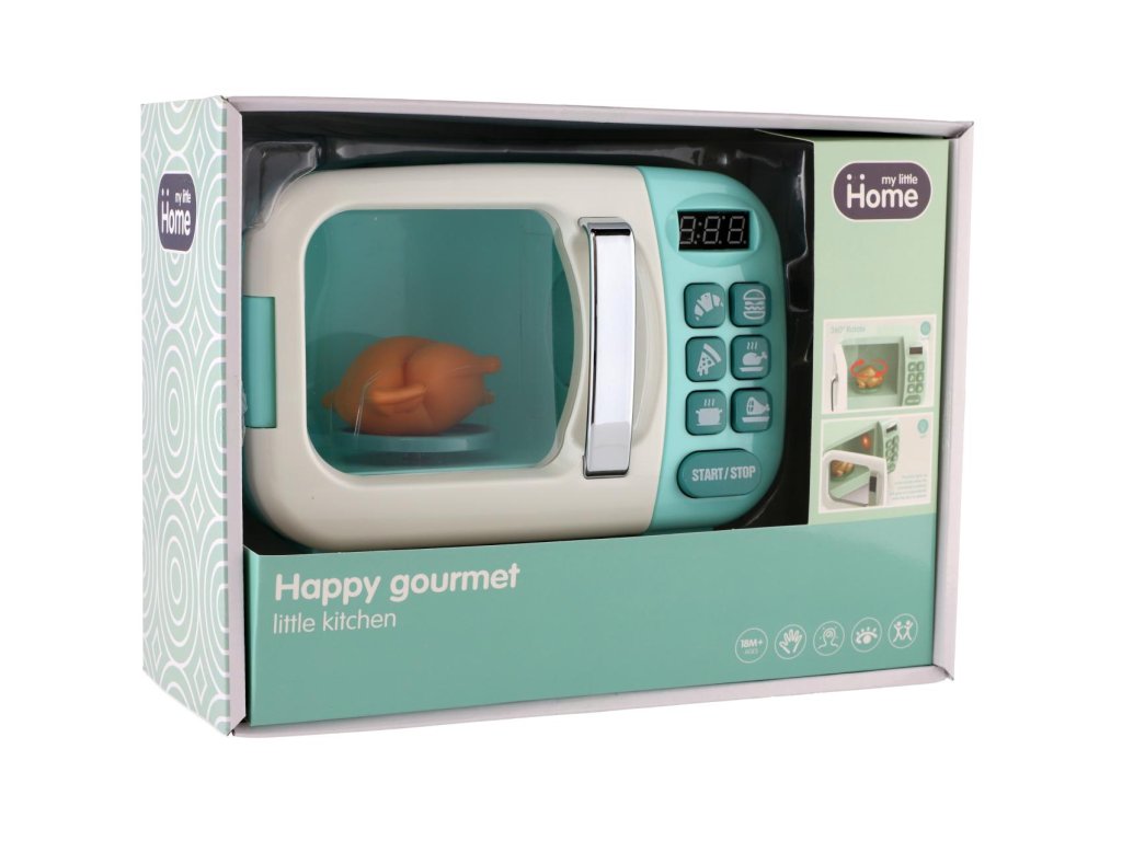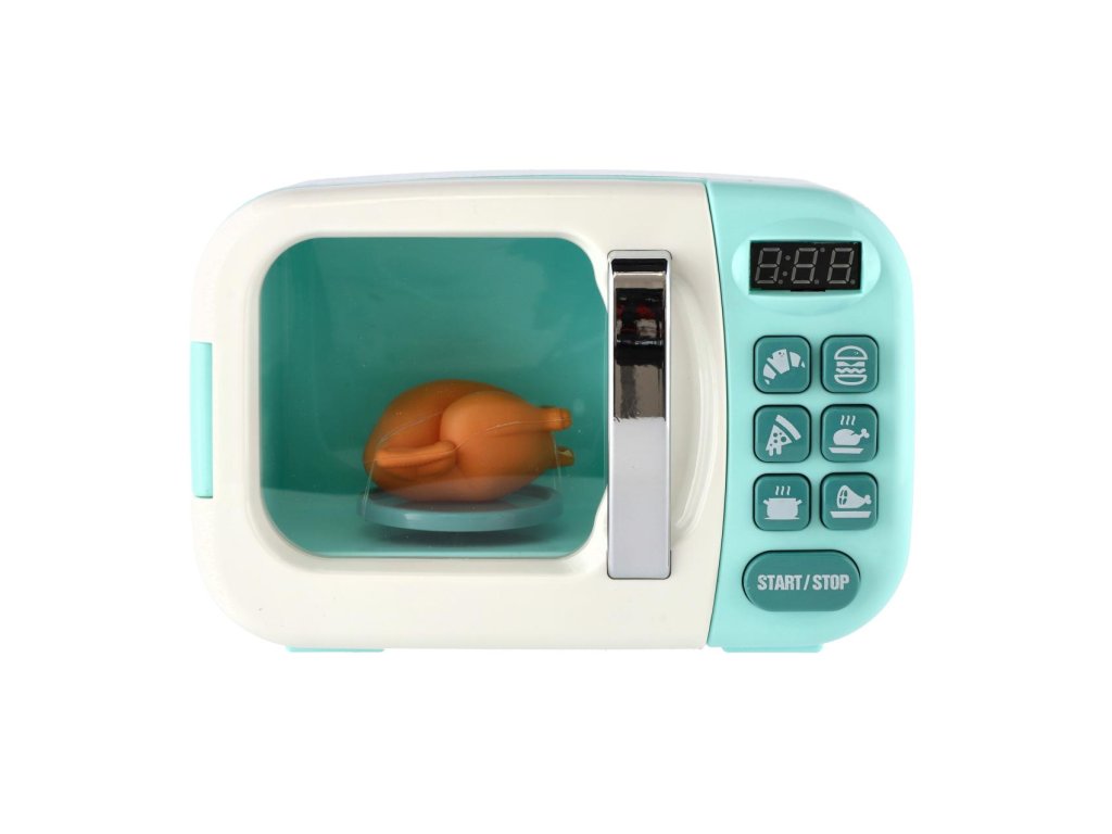 Mikrovlnná trouba nesmí chybět v žádné kuchyňce malé kuchařky. A ke všemu taková, kde je se kuře uvnitř otáčí o 360°C a světlo se automaticky rozsvítí, když začnete ohřívat a zhasne, jakmile otevřete dvířka. Mikrovlnka je vyrobena z kvalitního plastu, je se světlem a zvukem. Baterie 2x AA nejsou součástí balení.