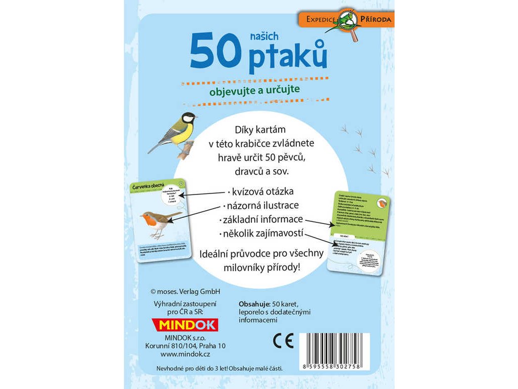 Díky kartám v této krabičce zvládnete hravě určit 50 pěvců, dravců a sov. Na kartách najdete kvízovou otázku, názornou ilustraci, základní informace a také několik zajímavostí. Ideální průvodce pro všechny milovníky přírody!