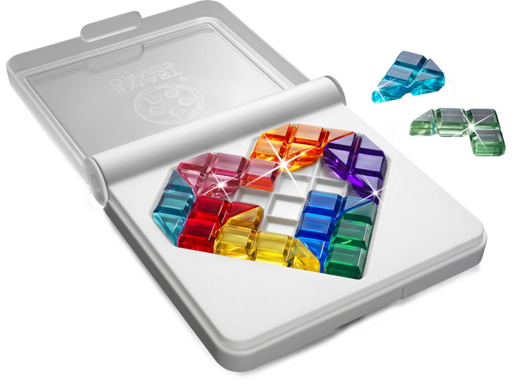 Zapojte své srdce a vyřešte barevné rébusy! Dokážete správně umístit všechny barevné drahokamy na herní desku a vytvořit z nich srdce? Dva různé způsoby hry na oboustranné herní desce a 120 různých rébusů vám zajistí dlouhodobý a kvalitní vztah s touto hrou!