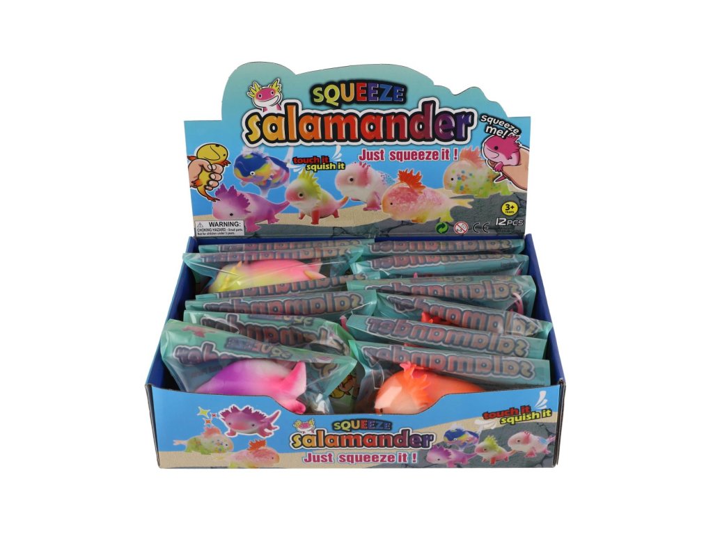 Mlok antistresový mačkací silikon 12x6cm mix druhů 12ks v boxu