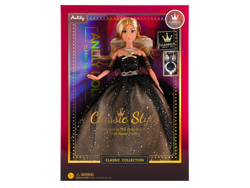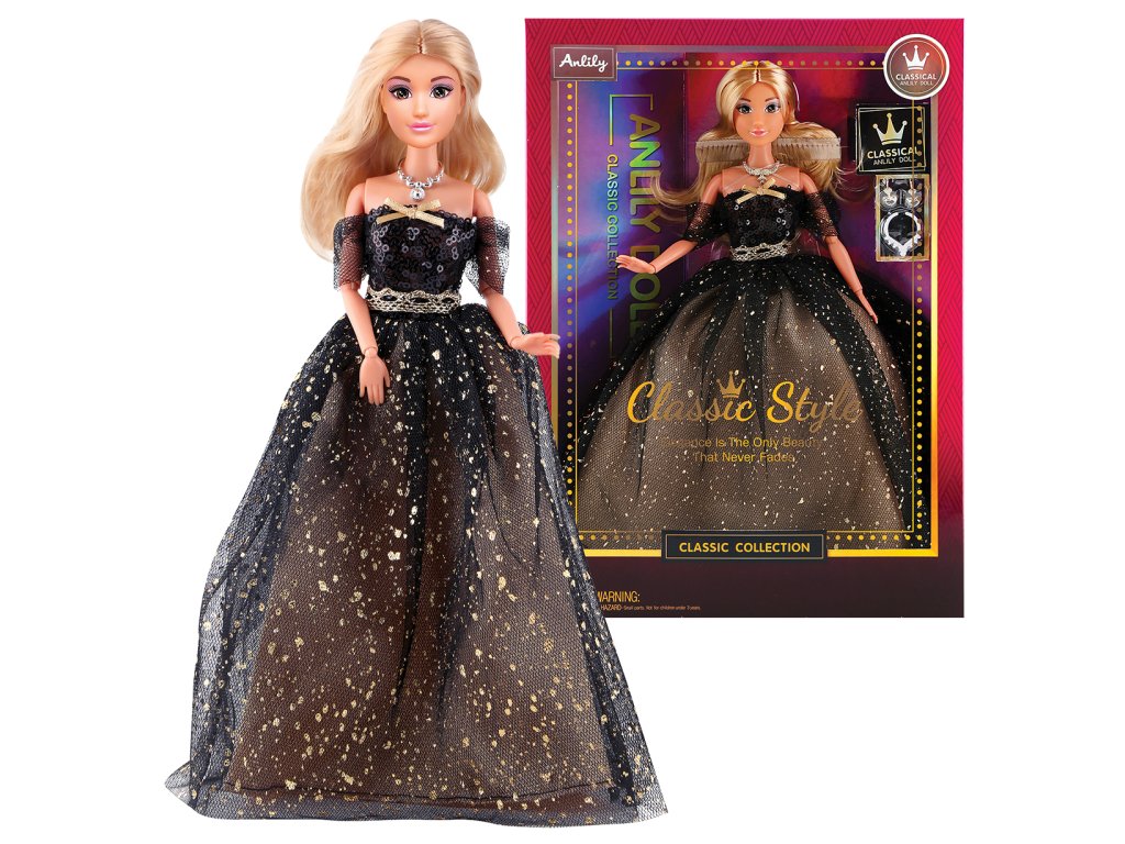 Módní panenka ve společenských šatech - dlouhé černé