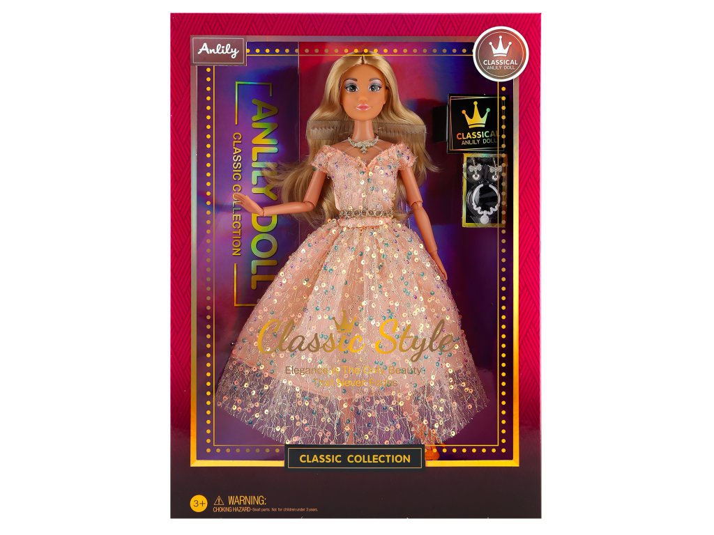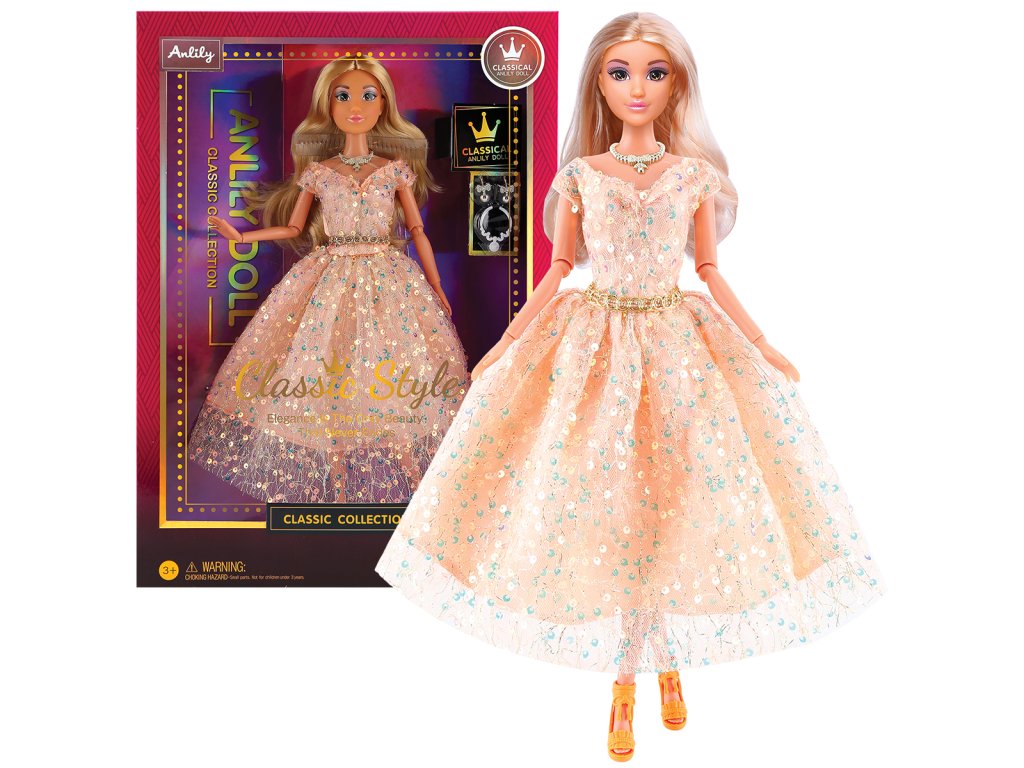 Módní panenka ve společenských šatech - dlouhé třpytivé