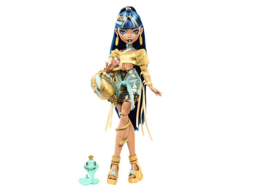 Tato panenka Monster High™ je fakticky mumiózní! Cleo De Nile je od hlavy až k patě oblečená ve svém elegantním stylu. Její strašidelná kobra Hissette je také připravena zapojit se do děsivých dobrodružství! Se svým kloubovým tělem a příšerkovskými doplňky pro vyprávění příběhů je panenka Cleo skvělým dárkem pro děti od 4 let.