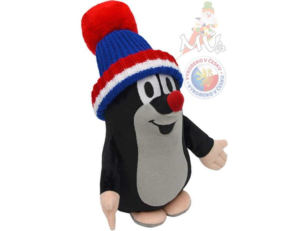 MORAVSKÁ ÚSTŘEDNA Krtek malý s čepicí modrá TRIKOLORA Krteček 25 cm *PLYŠOVÉ HRAČKY*