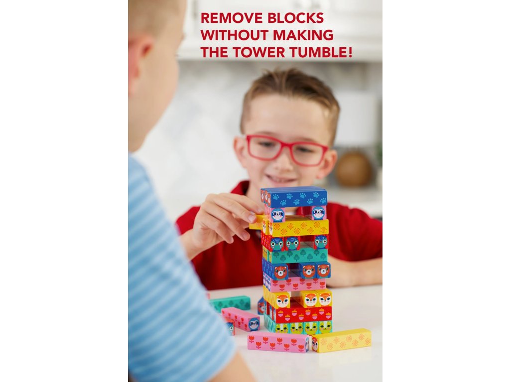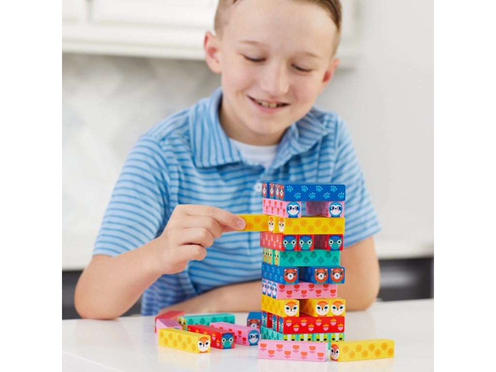 Tato hra pro všechny věkové kategorie s motivem zvířátek a přírody samotné se stane zábavou pro celou rodinu. Cílem hry je postupně vyjmout zespoda dřevěné dílky bez toho, aby věž spadla, a položit je nahoru. Kdo má nejpevnější ruku? Hra obsahuje celkem 40 dílků, 4 v každé vrstvě a podporuje jemnou motoriku, manuální zručnost, trpělivost a soustředění. Hlavní vlastnosti: krásné provedenípodporuje jemnou motoriku a zručnostvícejazyčný návod přiložen